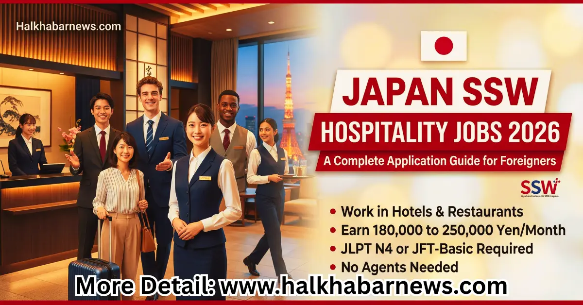 Halkhabar News is a trusted platform that provides genuine, up-to-date news and job vacancy information. If you are searching for ‘How to Apply for Japan SSW Hospitality Jobs 2026 for Foreigners,’ our research team has carefully collected this information from official and reliable sources such as the Japan Embassy, the Japan Government, and the Japan Job Market. The hospitality sector is facing worker shortages due to tourism growth. Japan is a beautiful country with many opportunities. In 2026, the Japanese government is looking for many people to work in hotels and restaurants. This is part of a program called SSW (Specified Skilled Worker).