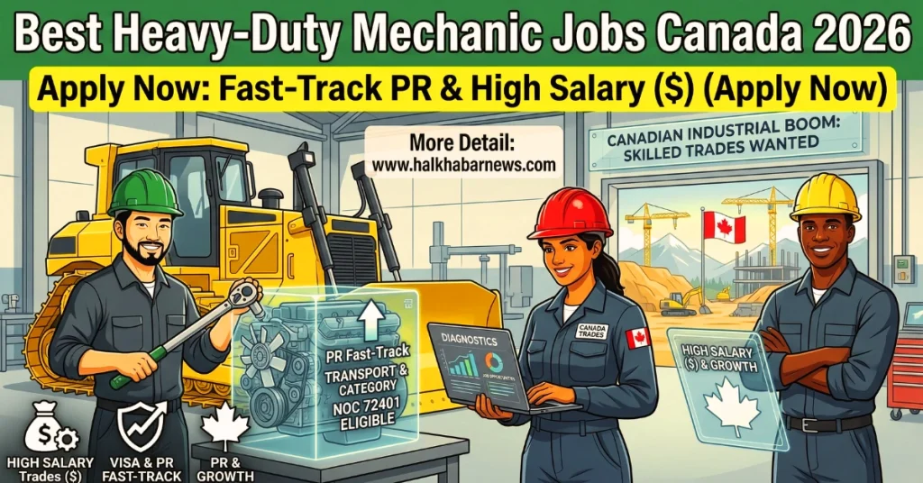 Welcome to Halkhabarnews Jobs Portal, your global partner in high-demand career placement. Here are more latest jobs and visa information. If you want to apply Heavy-Duty Mechanic jobs Canada, this is right place for you. In 2026, Heavy-Duty Mechanic Jobs Canada have emerged as one of the most reliable and highest-paying pathways for skilled tradespeople worldwide. As Canada intensifies its mining, forestry, and construction projects under the 2026 infrastructure plan, the shortage of certified mechanics has reached a critical level. For international workers, the newest Express Entry Transport and Trade Categories now offer a “fast-track” to Permanent Residency (PR), making it possible to secure your future in Canada faster than ever before.